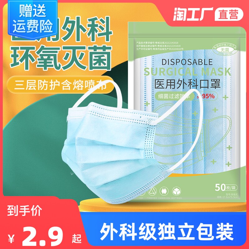 【商品】:3000个一次性医用口罩医疗医护外科三层防护**儿童学生独立包装