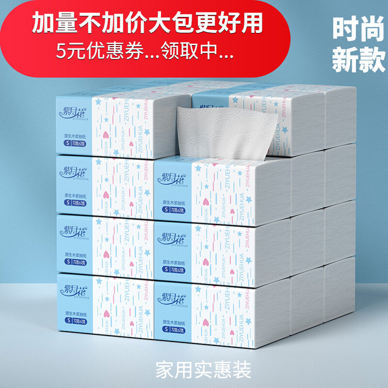 【商品】:紫月花纸巾抽纸家用卫生纸整箱批发实惠装餐巾纸擦手纸面巾抽纸3