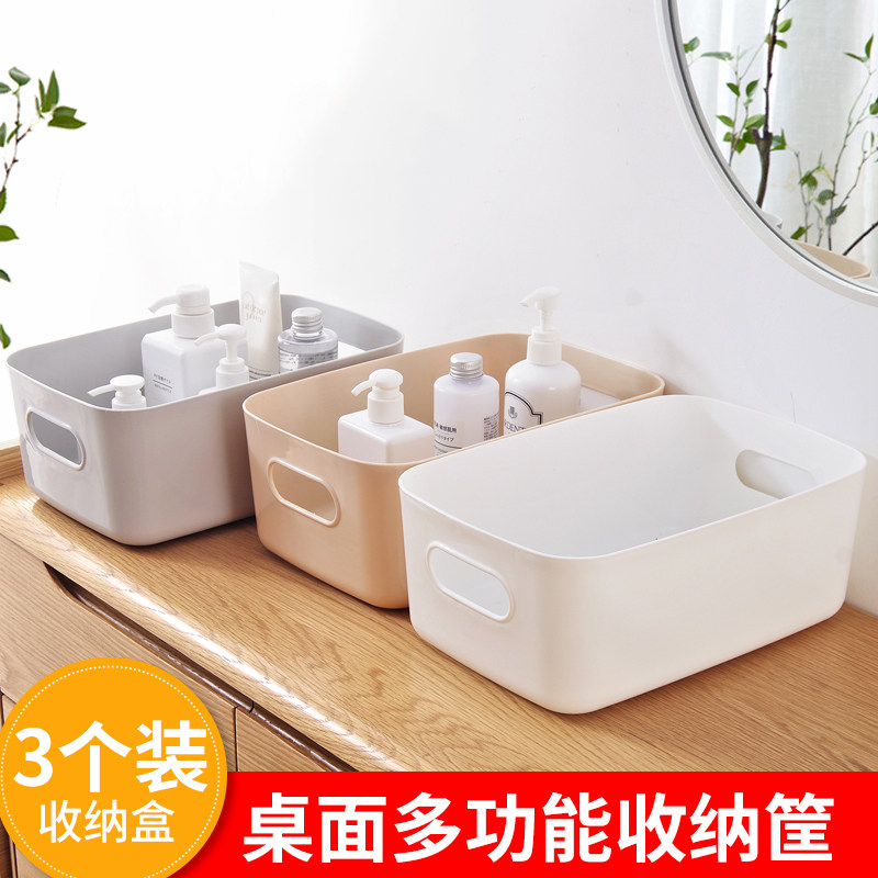 【商品】:杂物收纳筐学生桌面零食储物盒塑料化妆品收纳盒家用厨房整理盒子