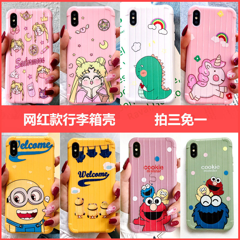 【商品】:创意潮牌卡通8plus苹果x手机壳XS Max/XR/iPhoneX/7p/6s女男款iphone11Pro硅胶行李箱新款情侣全包边防摔软壳