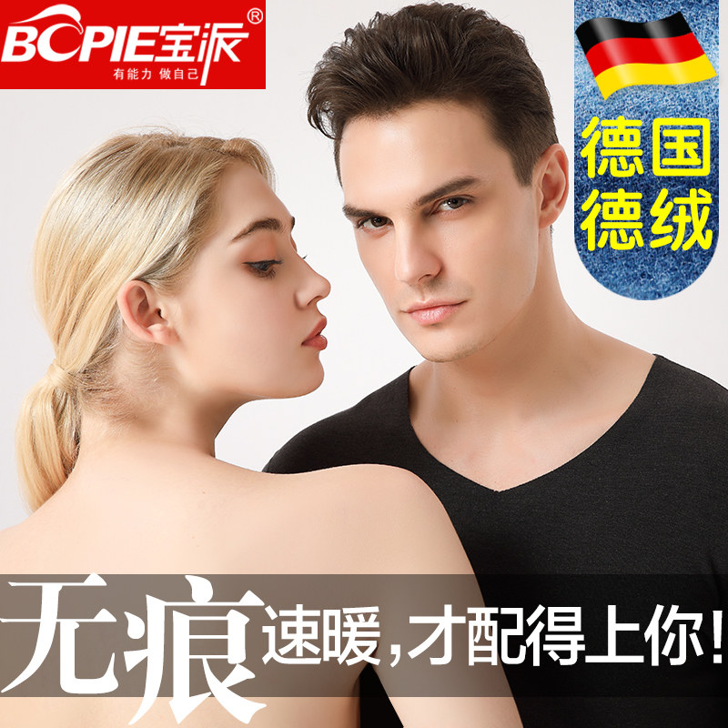 【商品】:德绒加绒男士发热恒温无痕保暖内衣套装男薄款女士秋衣秋裤女大码