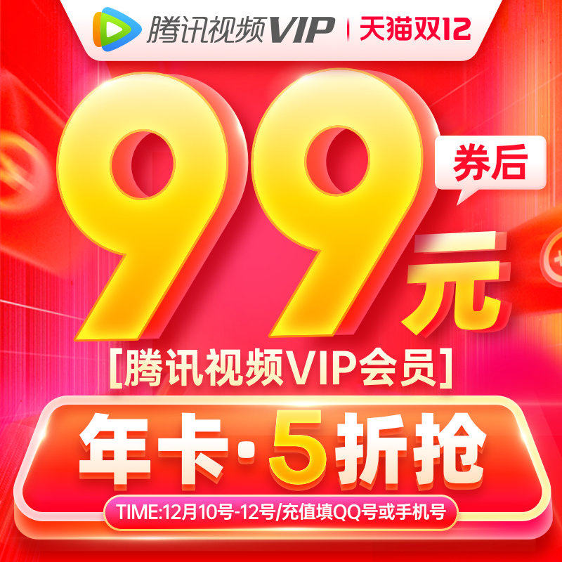 【商品】:【券后5折99元】腾讯视频VIP会员12个月一年卡影视视屏vip会员1年