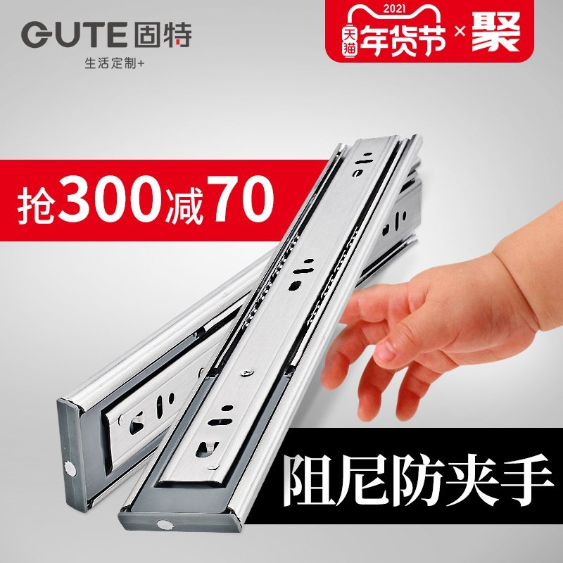 【商品】:固特不锈钢抽屉轨道三节轨加厚缓冲阻尼静音导轨橱柜键盘托滑轨