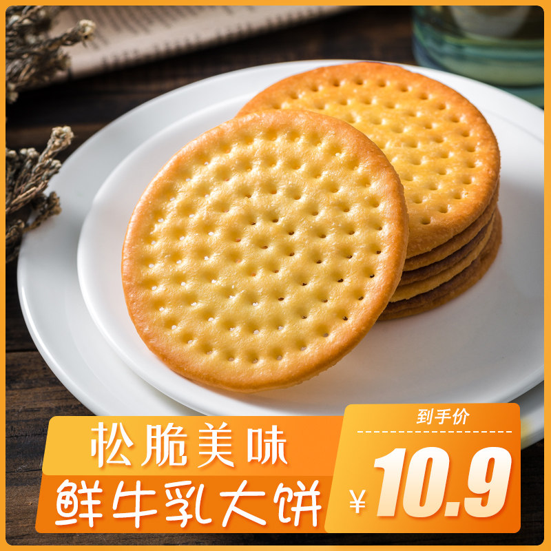 【商品】:草原鲜**大饼早餐牛**牛奶饼干休闲零食品小吃充饥夜宵小包装整箱