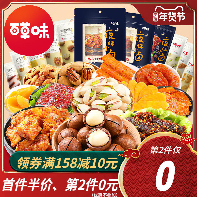 【商品】:百草味新年礼盒坚果大礼包2260g/13袋干果零食礼品年货置办一整箱