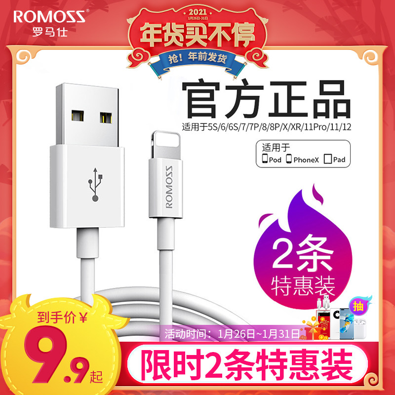 【商品】:罗马仕iPhone6s苹果数据线5s/6/7/8/x快充手机11通用ipad数据线单头短se闪充xr充电线器XS加长2米冲电线正品