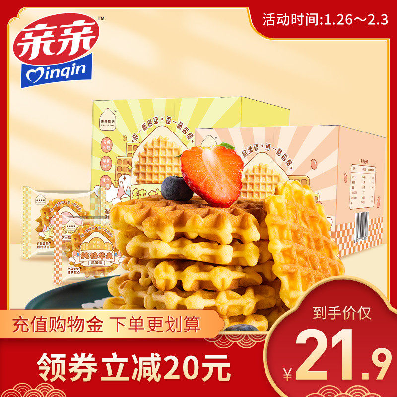 【商品】:亲亲华夫饼干750g整箱营养早餐速食手撕面包蛋糕网红零食充饥夜宵