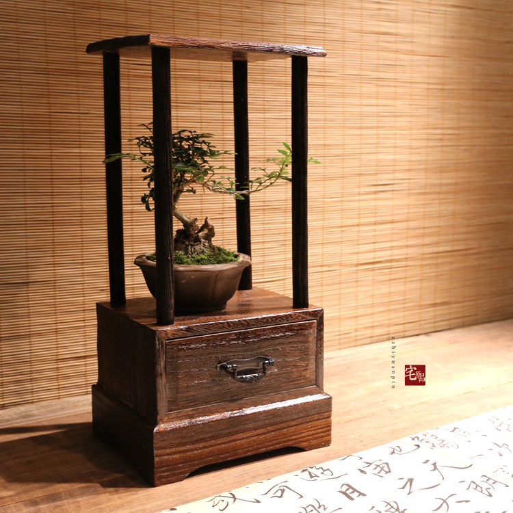 【商品】:实木日式盆栽架 茶道摆件 烧桐木收纳盒 创意暗格玄关花架包邮