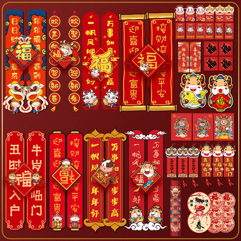 【商品】:2021牛年对联春节春联家用广告对联定制做创意新年过年对联大礼包