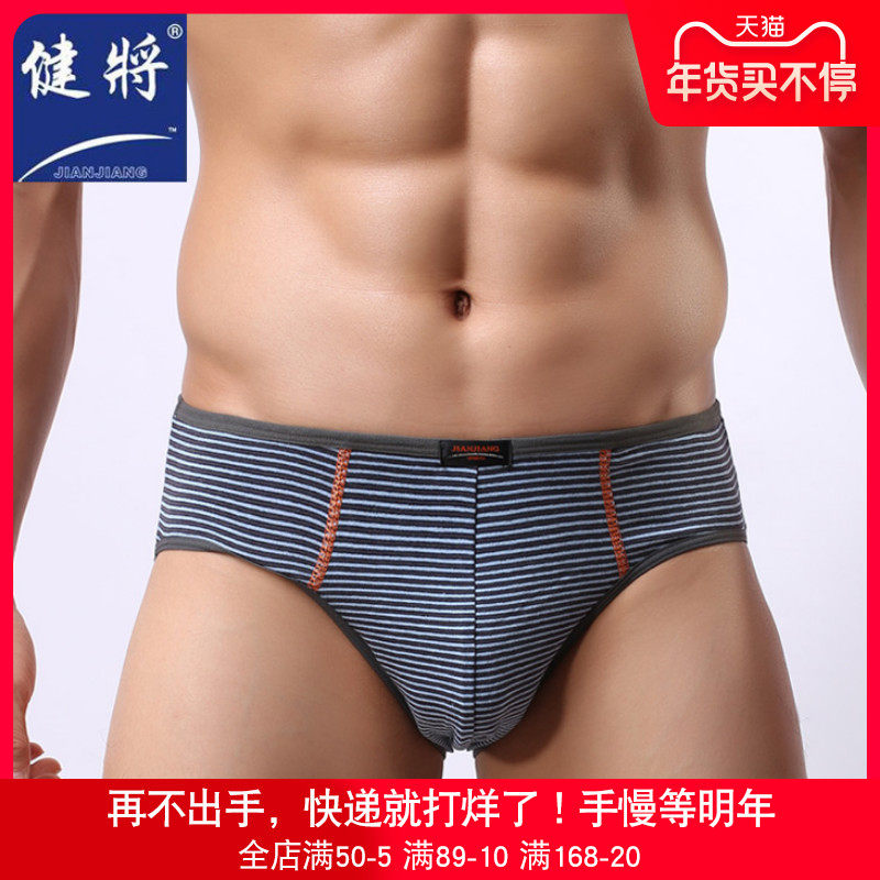 【商品】:正品健将男士**透气纯棉性感条纹细腰带中腰宽松大码青年三角裤