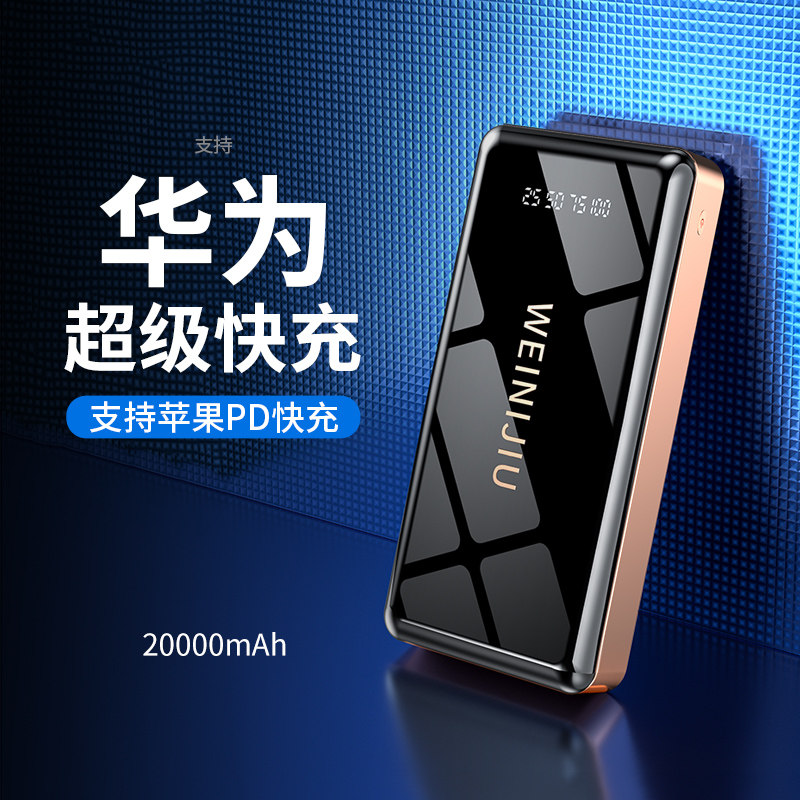 【商品】:充电宝20000毫安超大容量超薄小巧便携适用于小米华为苹果手机移动电源双向快充迷你自带线三合一1000000专用