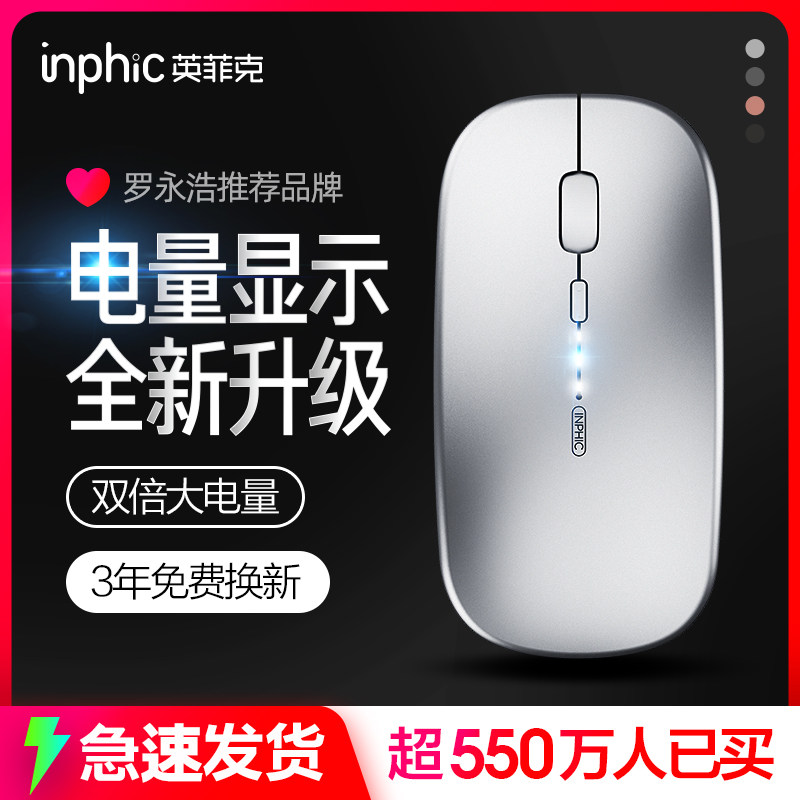 【商品】:英菲克PM1无线便携鼠标可充电式蓝牙双模5.0静音无声男女生无限办公游戏适用于苹果mac笔记本电脑台式USB通用