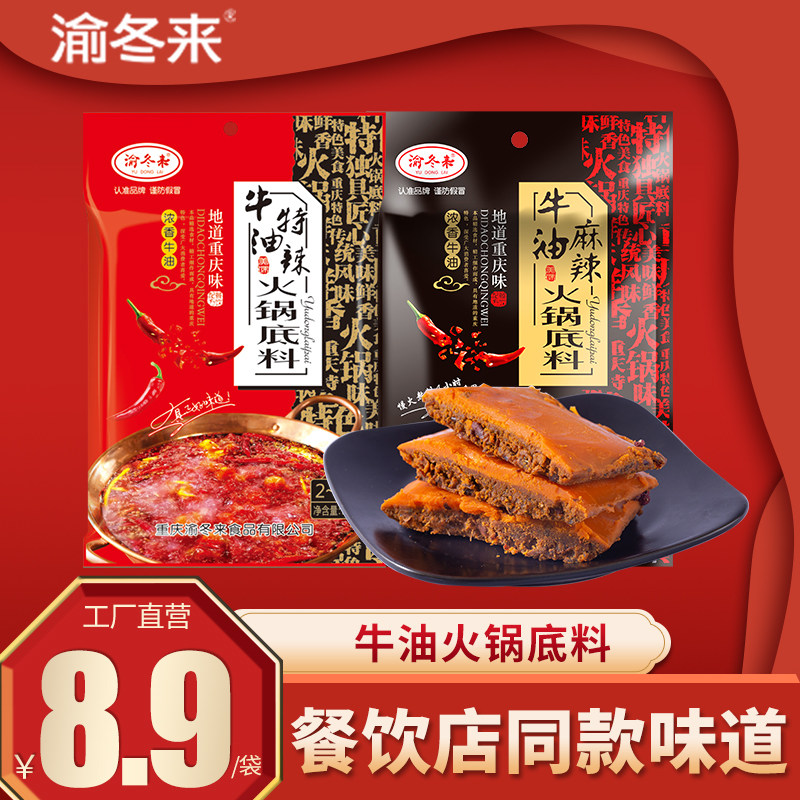 【商品】:渝冬来正宗重庆牛油老火锅底料四川超麻辣烫家用火锅小包装一人份