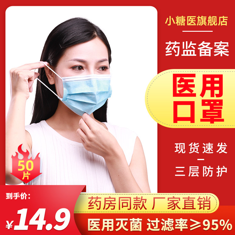 【商品】:医用口罩一次性医护医生用三层防护透气儿童医疗专用口罩独立包装