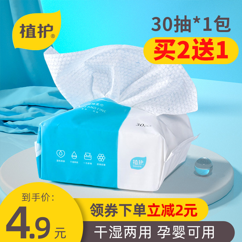 【商品】:植护棉柔巾一次性擦脸婴儿干湿两用抽取式洁面洗脸巾女30片便携装
