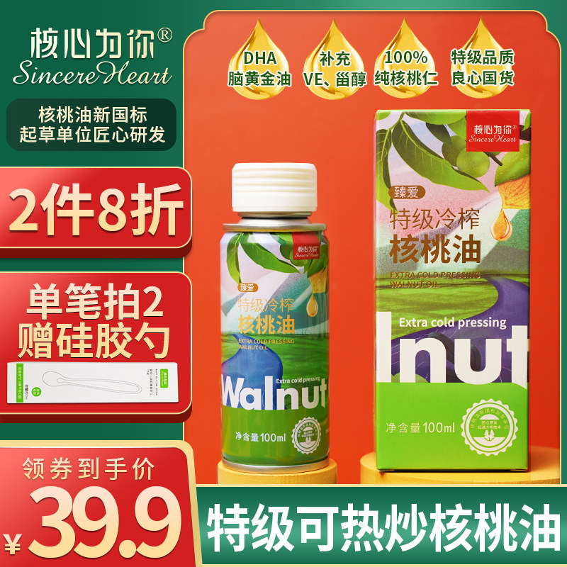 【商品】:核心为你特级冷榨核桃油100ml搭配婴幼儿宝宝食用添加料DHA辅食油