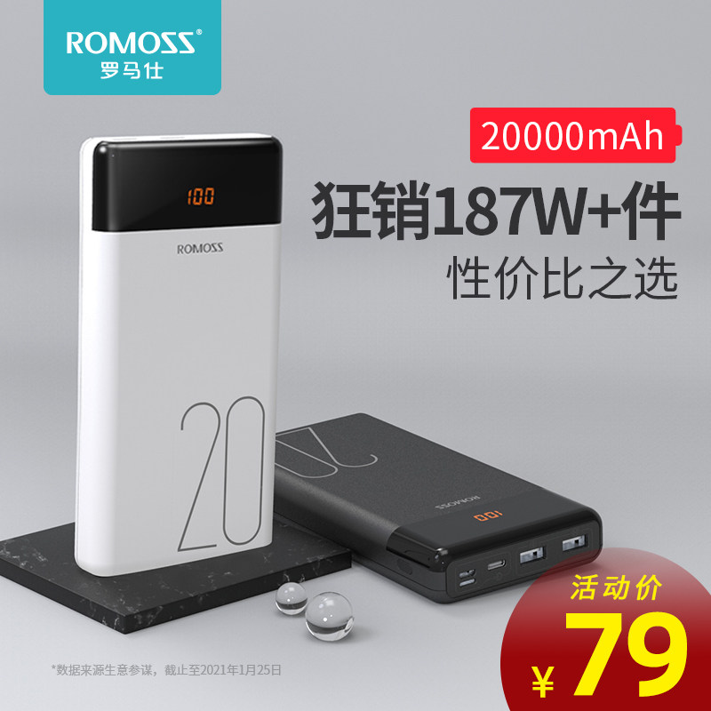 【商品】:罗马仕充电宝20000毫安超薄大容量罗马 仕旗舰店官方正品适用于苹果小米华为手机快充便携移动电源专用