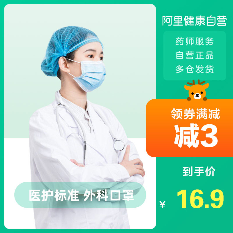【商品】:【阿里健康】掌护医用外科口罩50只三层防护医护防护**医疗口罩