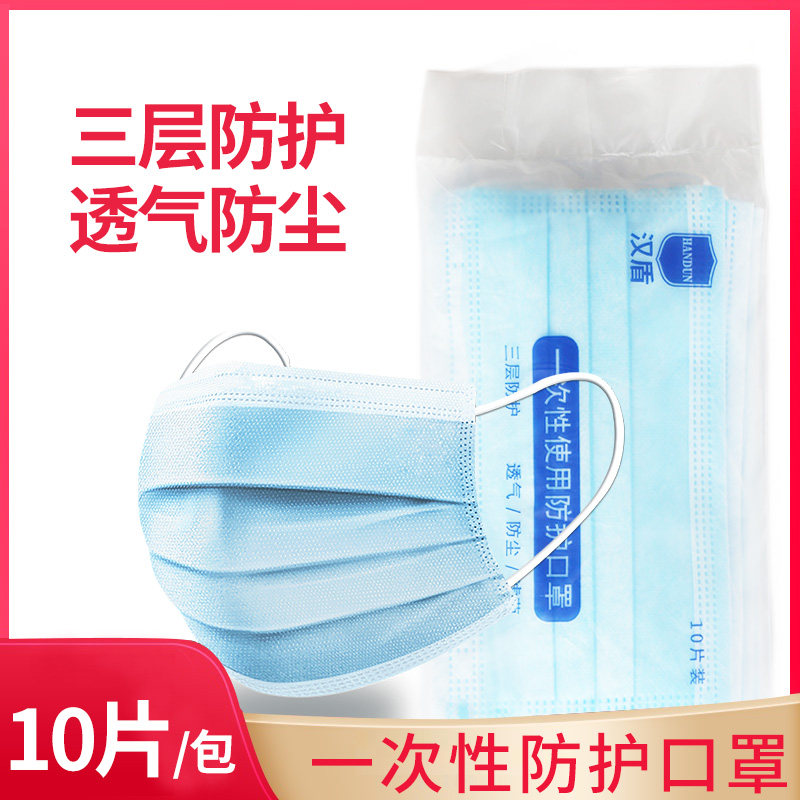 【商品】:汉盾一次性口罩防尘三层**夏季透气防飞沫花粉雾霾防柳絮