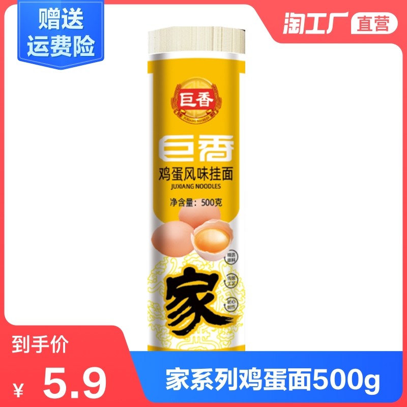 【商品】:巨香家系列鸡蛋面面条500g*1筒挂面细面拌面挂面