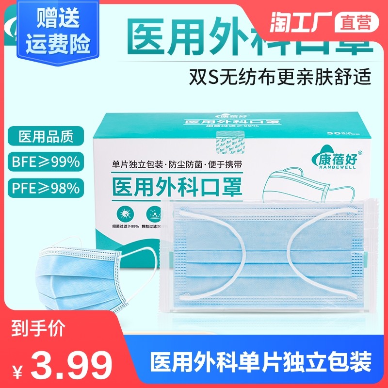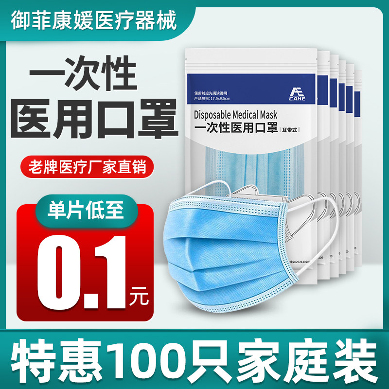 【商品】:100只口罩医用外科一次性三层医疗医生专用医科外用医护独立包装
