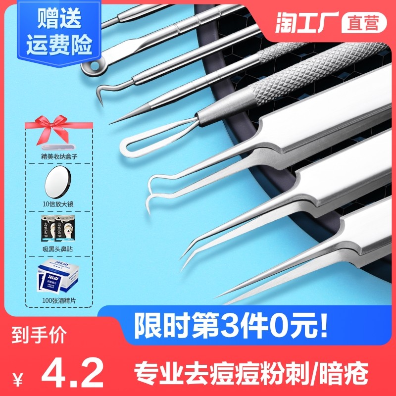 【商品】:四件套粉刺针祛痘挑痘去黑头暗疮针工具神器套装粉刺夹化妆痘痘针