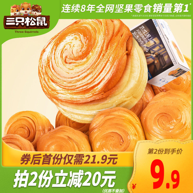 【商品】:【三只松鼠_手撕面包1kg】网红零食小吃休闲食品早餐蛋糕全麦面包