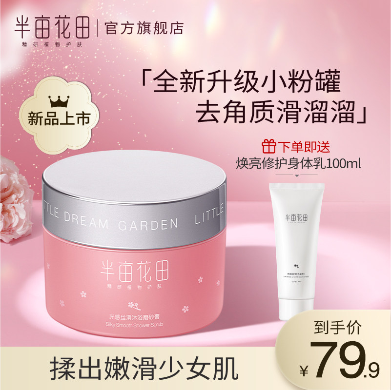 【商品】:半亩花田樱花冰淇淋身体磨砂膏去角质焕亮女全身疙瘩沐浴露小粉罐