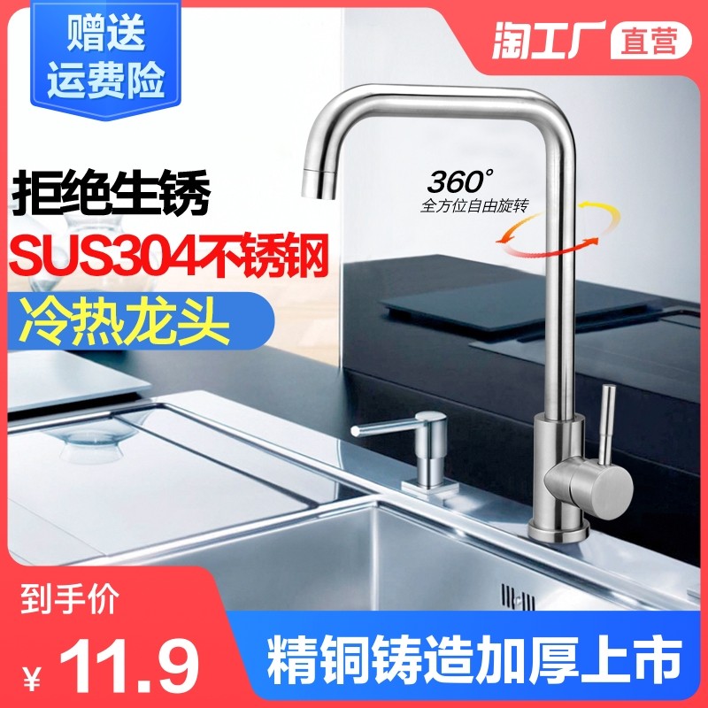 【商品】:厨房洗菜盆冷热水龙头二合一单冷304不锈钢家用洗碗池面盆洗手盆