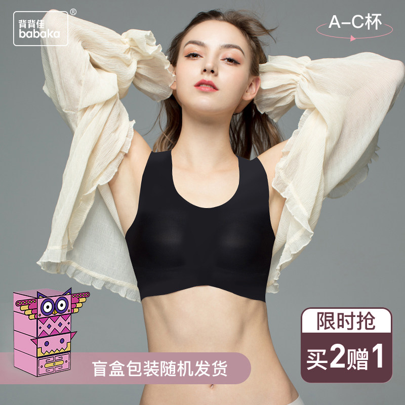 【商品】:无痕**胶内衣女无钢圈小胸聚拢收副**防下垂运动少女文胸夏季薄款