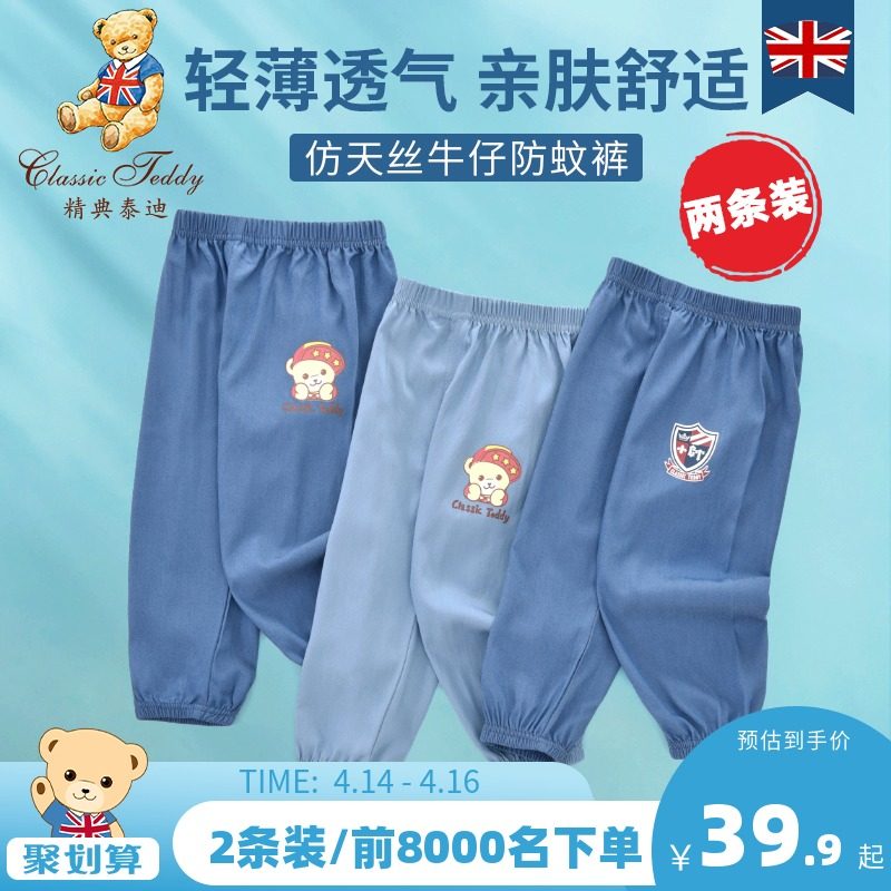 【商品】:儿童防蚊裤薄款夏男童女童宝宝灯笼裤休闲运动长裤子中大童牛仔裤