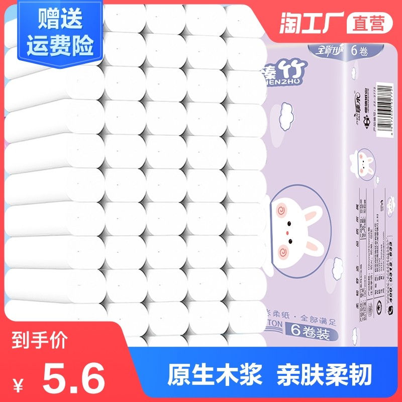 【商品】:6卷便携无芯卫生卷纸柔韧卫生纸家用实惠装厕所厕纸手纸卷筒纸巾