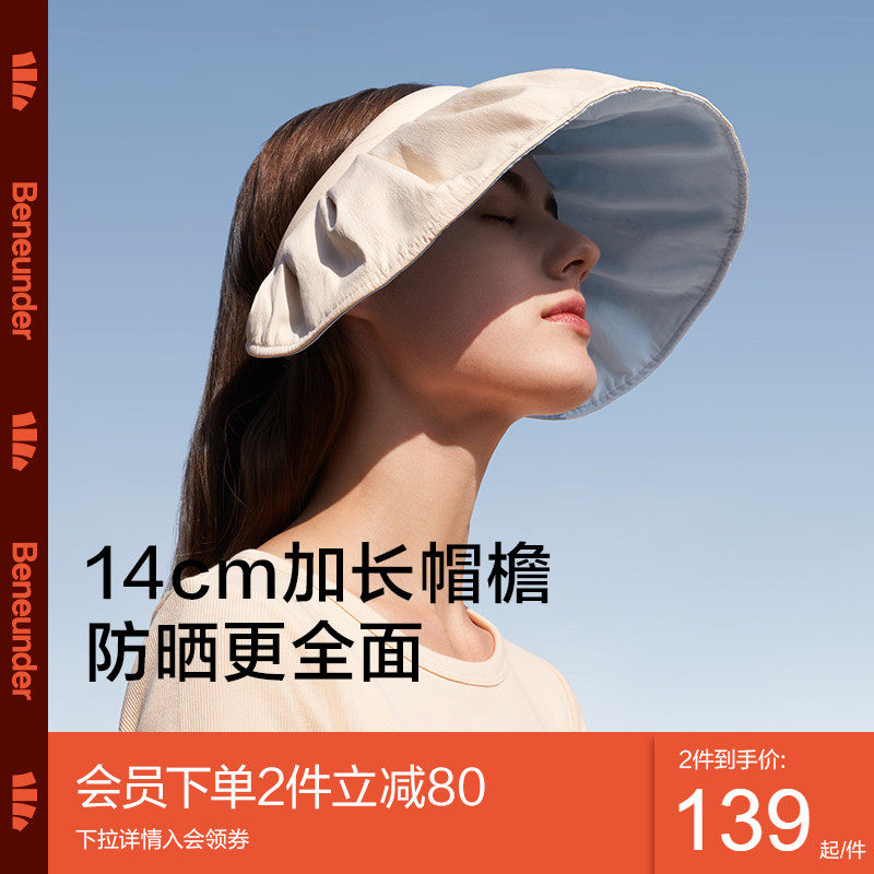【商品】:蕉下贝壳防晒帽女防紫外线夏季遮脸沙滩遮阳帽骑车空顶太阳帽子