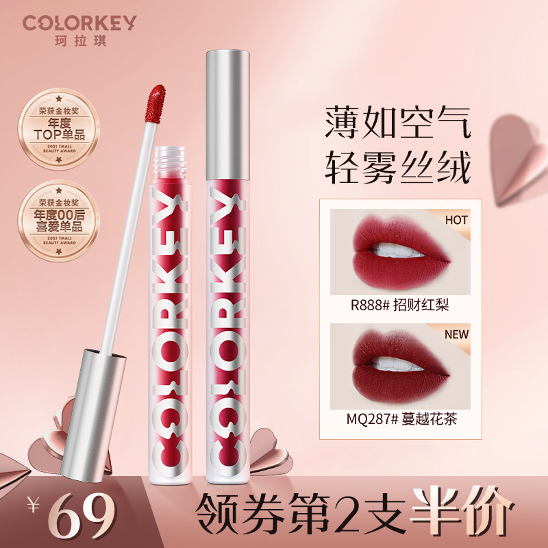 【商品】:colorkey珂拉琪空气唇釉丝绒哑光雾面口红唇彩持久显白平价学生