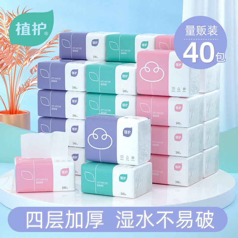 【商品】:40包植护餐巾纸抽纸家用原木浆卫生纸巾压花面巾纸婴儿整箱实惠装