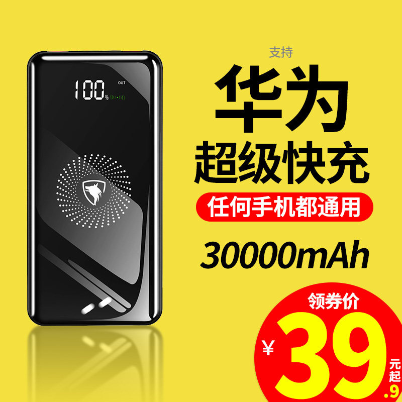 【商品】:充电宝20000毫安超大容量超薄小巧便携适用于小米华为苹果手机移动电源双向1000000快充迷你自带线三合一专用