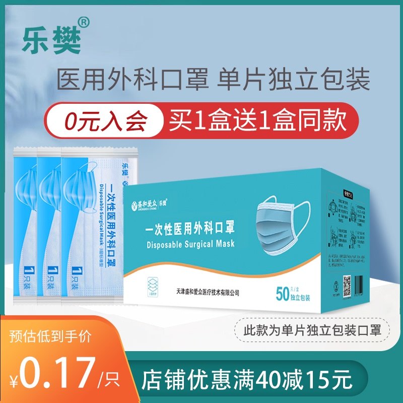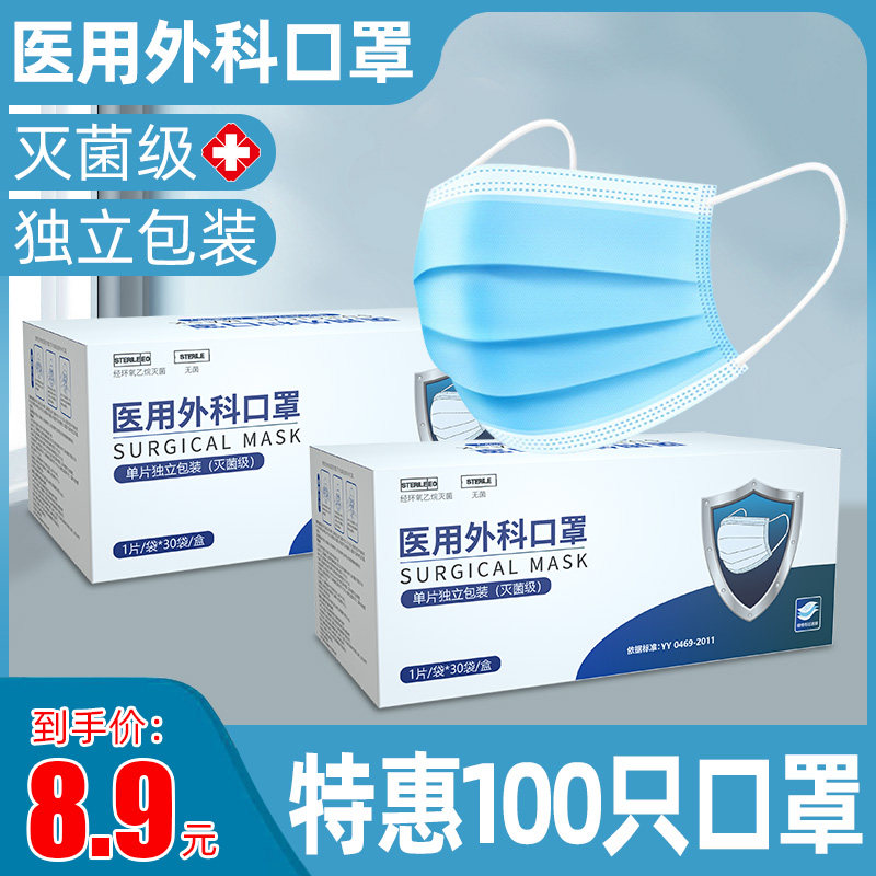 【商品】:买1送1稳健一次性外科口罩医用医护专用口罩三层防护非独立包装