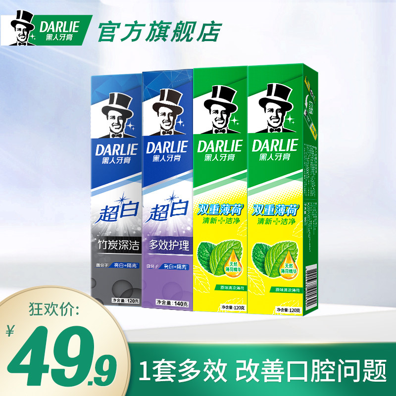 【商品】:黑人茶倍健超白牙膏茶香家庭实惠装清新口气去垢去渍防蛀官方