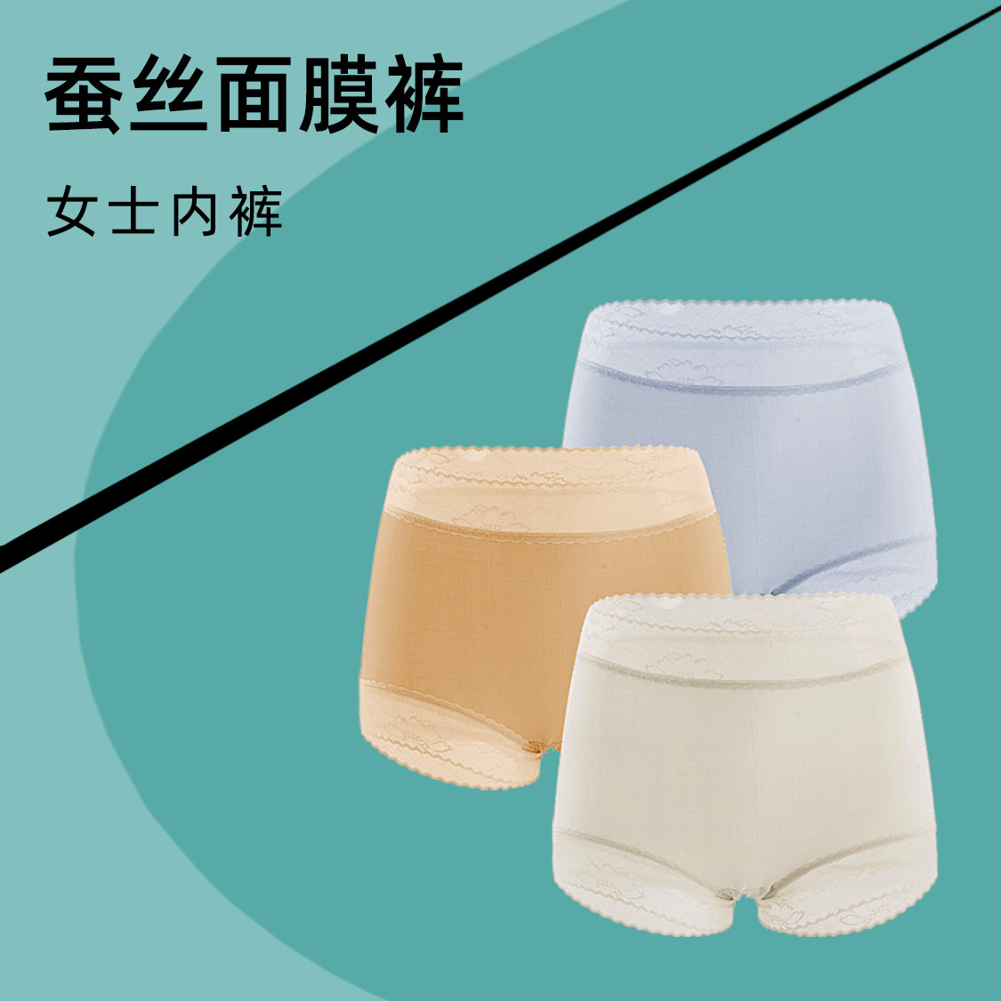 【商品】:森珠蚕丝无痕**女夏纯棉款透气抗菌大码中高腰三角女士蕾丝短裤