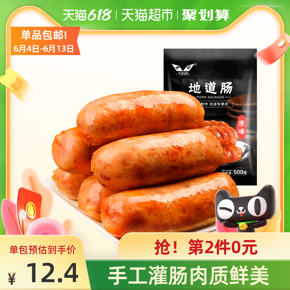 【商品】:老杜地道肠火山石烤肠热狗500g台式香肠纯肉烧烤脆皮肉肠高考早餐