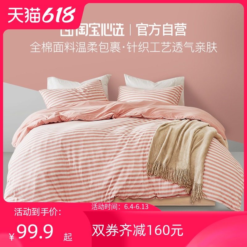 【商品】:淘宝心选全棉针织条纹四件套裸睡软糯柔软床品床笠款1.2m1.5m1.8m