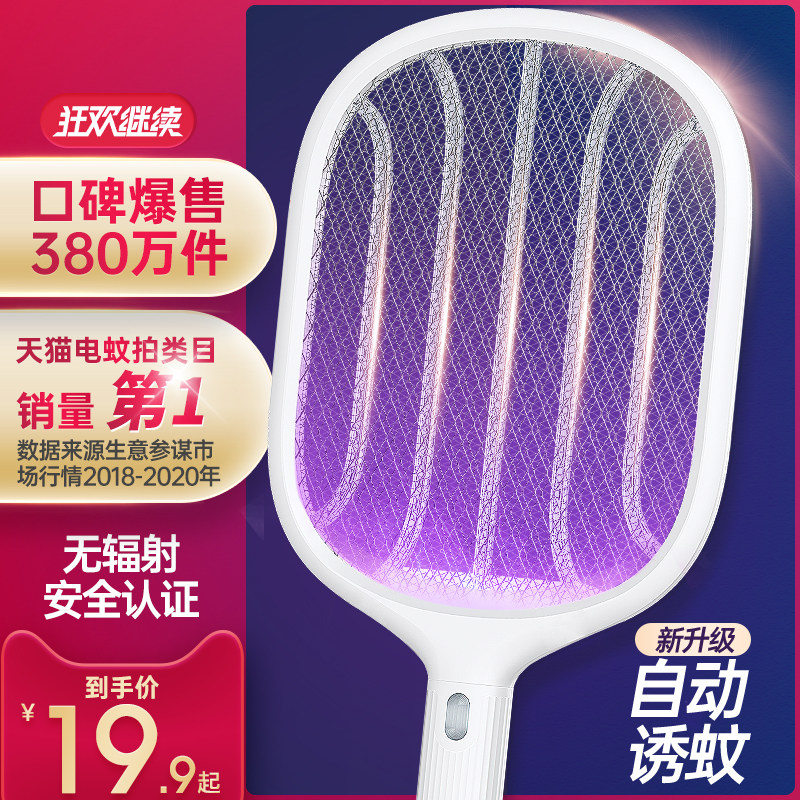 【商品】:雅格电蚊拍充电式家用超强灭蚊灯器二合一锂电池强力打蚊子苍蝇拍