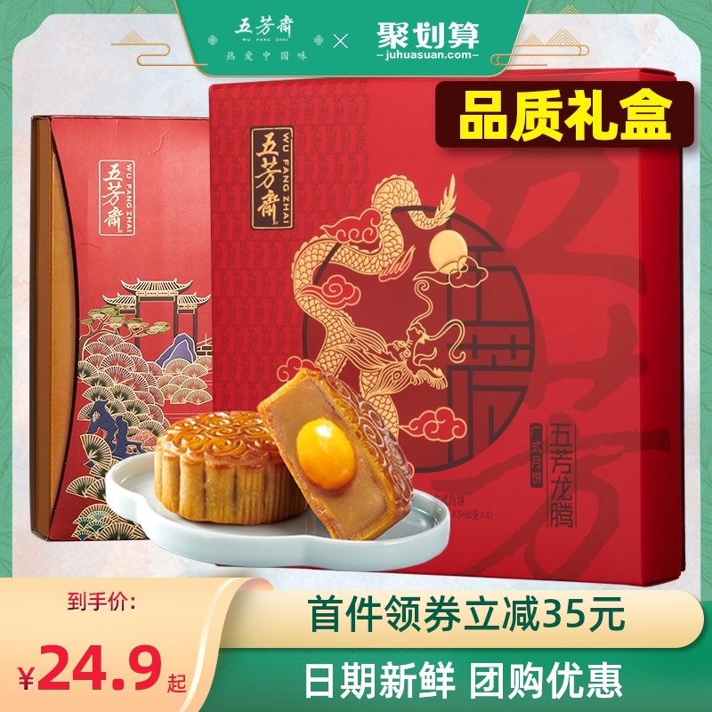 【商品】:五芳斋月饼礼盒装蛋黄莲蓉豆沙月饼五仁多口味送礼广式中秋节月饼