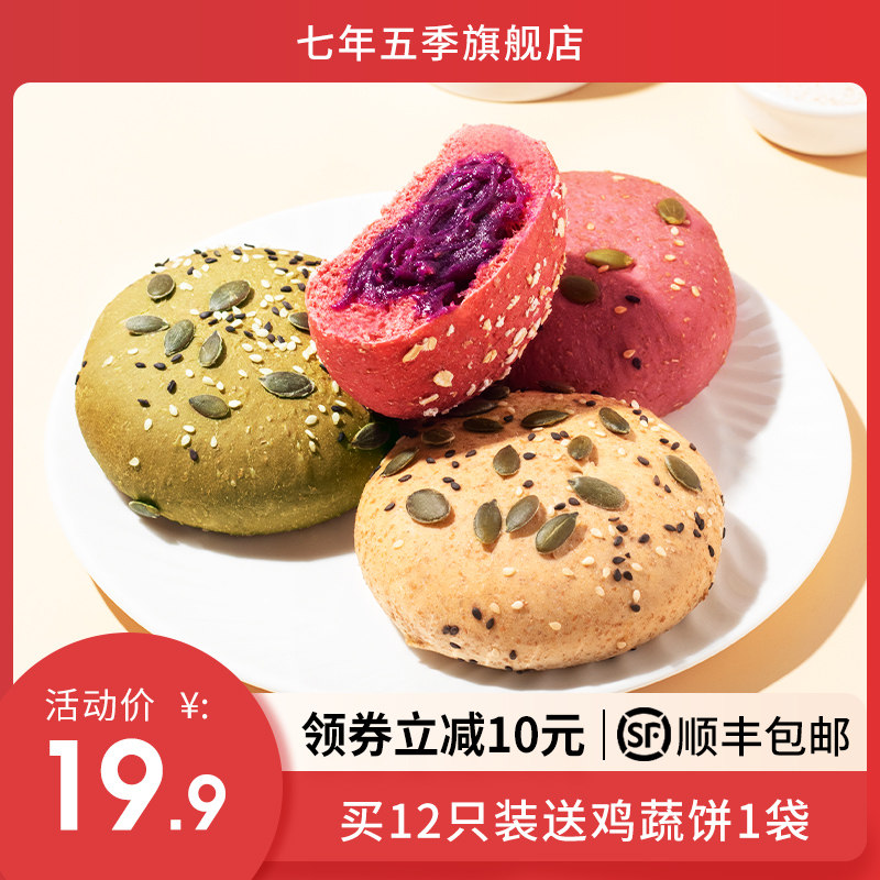【商品】:七年五季全麦面包健康零食低脂食品无糖精粗粮早餐代餐饱腹欧包