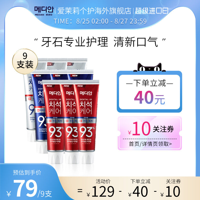 【商品】:【官方正品】韩国爱茉莉麦迪安93洁白护龈去口臭牙膏家庭装120g*9