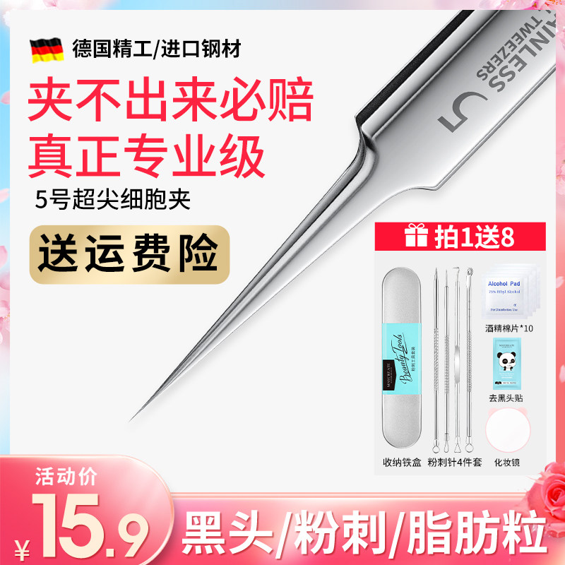 【商品】:5号超尖细胞夹去黑头夹镊子美容院专用刮闭口神器粉刺痘痘针工具